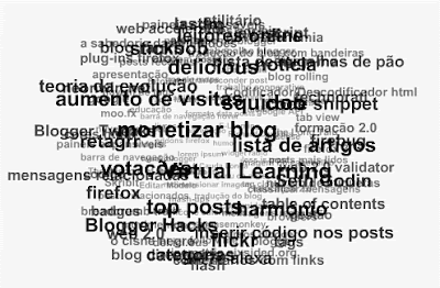 6. Para customizar a nuvem, nos parâmetros que indiquei no início deste artigo, consulte o blogger buster, em http://www.bloggerbuster.com/2008/09/alternative-installation-for-blogumus.html, de onde tirei este widget.